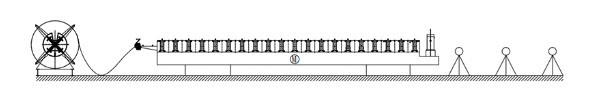 Decoiler → 수동미리 컷테르 →가이드 급송→롤 성형시스템 → 유압 포스트 커터 → 랙 출구